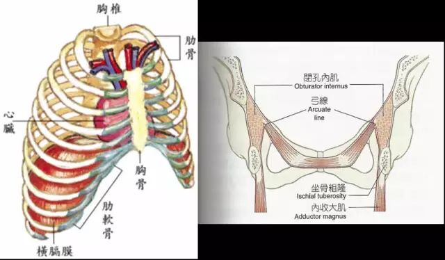 骨盆底肌、髂腰肌、横膈和斜角肌分别组成了前深链的不同部分,构成了身体肌筋膜的核心,与呼吸及行走的节奏息息相关。当前深链缺乏支撑、平衡和适当的张力时就会导致身体全面缩短,使得骨盆及脊椎核心坍塌,出现呼吸、步行及全身脏器功能的紊乱。