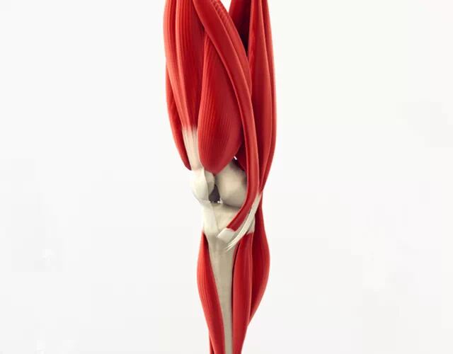 环绕膝关节四周的众多肌肉,以位于大腿前方的股四头肌与位于大腿后方的大腿后肌,最为重要。