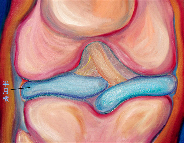 介于股骨内外髁软骨与胫骨平台软骨之间,还有一种特殊的会活动的软骨,因其形状似半月形,特称其为半月板。