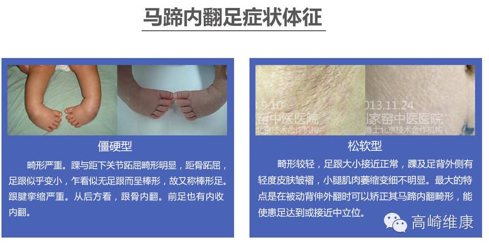 新生儿足内翻与先天性马蹄足外观相似,多数为一侧,足呈马蹄内翻,但足内侧不紧,足可以背伸触及胫骨前面,经手法治疗1~ 2 个月可完全正常。
